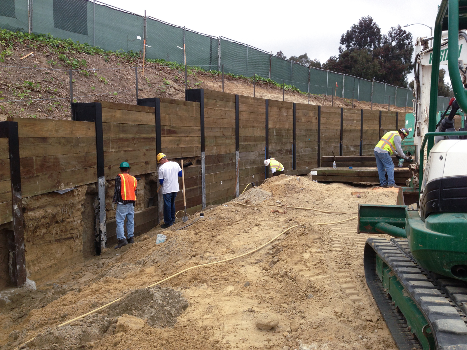 The owners and architects wanted a permanent curved shoring wall with epoxy coated wide flange steel beams and pressure-treated 4″x12″ wood planks. The shoring system was meticulously installed and the final look of the shoring wall was exactly what they envisioned. This type of beam and lagging shoring system has been requested by many clients throughout all of San Diego, CA. Contact our construction team for your custom shoring and drilling projects.